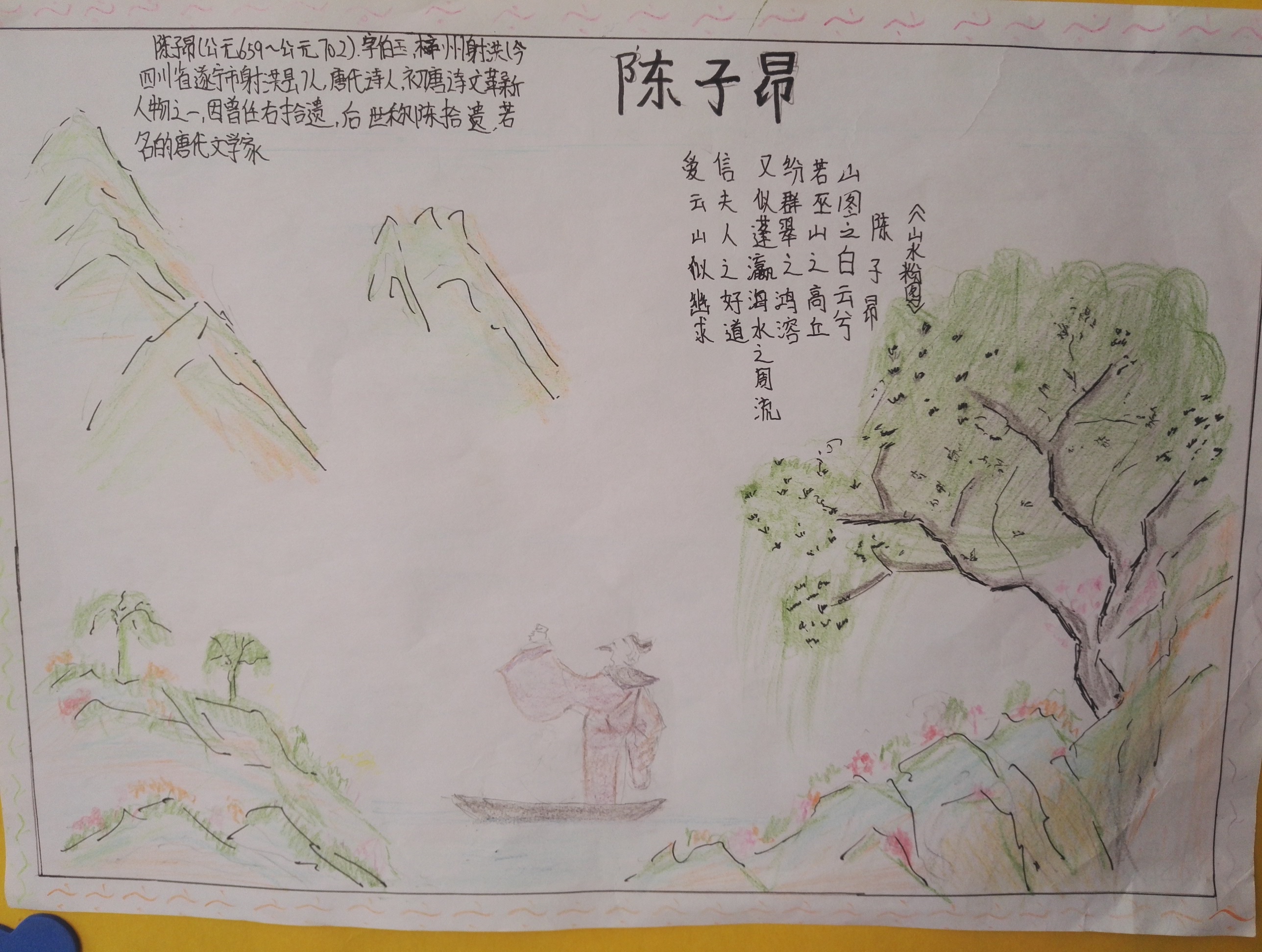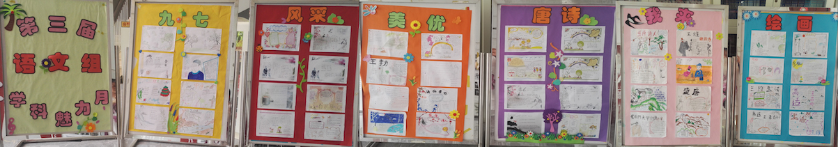 伴随着语文学科魅力月活动的开展,校内开始洋溢着浓浓的语文味道。在经过前期的筹划准备后,校园内展板上陆续展出了同学们绘画的唐代诗歌以及作者介绍。同学们根据相关的故事内容,亲手绘画了精美的手抄报。王维、李白、杜甫、孟郊、贺知章等多位知名诗人和他们的诗篇,都被同学们用手中的七彩画笔画进了自己的手抄报中。